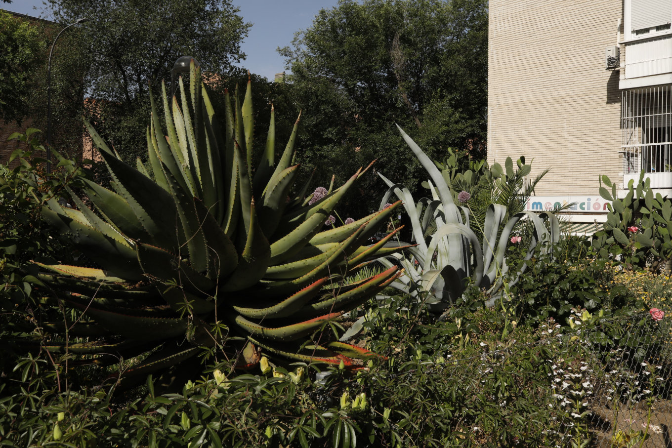 Esa primera vez no conocimos a Victor, vecino y portero del edificio al que pertenece el jardín. Nos quedamos absortos admirando la gran planta de ágave que irremediablemente capta la mirada del paseante. No hizo falta cocer sus carnosas hojas o las de los demás cáctus esparcidos por el jardín para quedar hipnotzados por su imponente presencia.